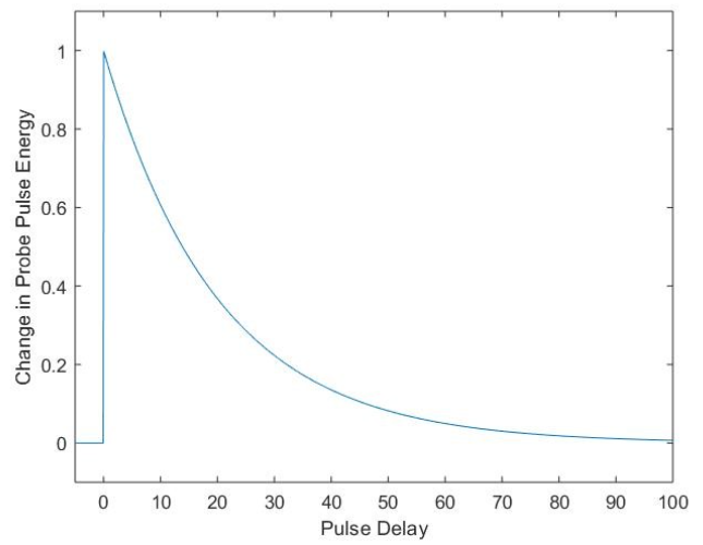 使用超快激光進行瞬態(tài)吸收光譜測試有許多不同的方法,基本上依據(jù)泵浦探針。該方法需要兩束激光同時激發(fā)分析物并測量吸光度。首先,高強度的泵浦激光激發(fā)樣品中的部分分子到更高的能級,從而改變了分子的居數(shù)差,降低了躍遷的吸收系數(shù)。然后,通過低強度的探針激光通測量樣品吸收。通過計算有無泵浦激光時探針激光的吸收差值,就可以確定吸收的變化。然后根據(jù)泵浦脈沖與探針脈沖的不同延遲時間系統(tǒng)重復(fù)此過程,測量發(fā)射探針脈沖能量的變化,如圖2所示。從這些數(shù)據(jù),我們現(xiàn)在可以建立能級躍遷動力學(xué)的圖像,并確定自發(fā)壽命和其他瞬態(tài)效應(yīng)。