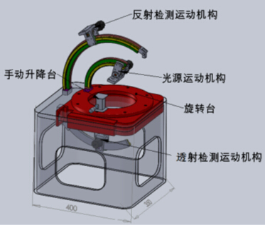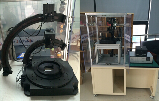 雙向反射分布函數(shù)(Bidirectional Reflectance Distribution Function)表示了不同入射角條件下物體表面在任意觀測角的反射特性,對于研究物質(zhì)、材料的基礎(chǔ)物理特性和應用前景有著重要的意義。但是這一分布函數(shù)的測量存在著角度定位精度要求高,測量點多,測試數(shù)據(jù)量大的難點,單純由手動操作難以完成。荷蘭Avantes公司研發(fā)了雙向反射分布函數(shù)測量系統(tǒng),集成大功率鹵鎢燈照明系統(tǒng)、雙通道光纖光譜儀探測系統(tǒng)、測量機械系統(tǒng)和控制系統(tǒng)。
