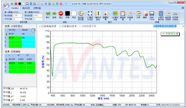 圖6 AvaSR-96測(cè)試太陽(yáng)反射比